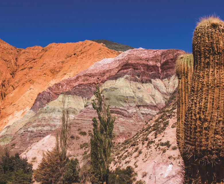 The road to the salt flats of Jujuy Province climbs steadily through watercolour hills before levelling off at a cool 3450m. In every direction, spot cheerful weathered gauchos on horseback. The air is thin but a blue sky sparkles nearly every day. Expanses of salt stretch endlessly, the perfect spot for a picnic. Stay the night in tiny Purmamarca, untouched by time but replete with creature comforts. Then return to Salta City for your flight to Iguazú Falls