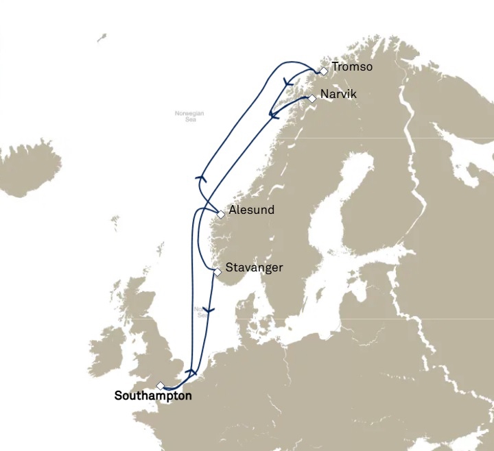 Discover Norway’s far north with this Fly, Stay & Cruise package featuring a three-night London stay before joining Queen Anne for a 12-night Northern Lights voyage through Norway’s majestic fjords, with late-evening calls in Tromsø and Narvik offering prime aurora-spotting opportunities.