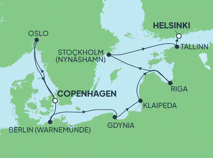 • 9 night cruise onboard Norwegian Prima from Copenhagen to Helsinki