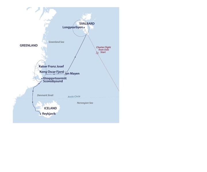 We will attempt to reach Kaiser Franz Josef Fjord, a remote and rarely visited fjord system with countless opportunities for exploration, located within the Northeast Greenland National Park. We hope to cruise through Kong Oskar Fjord, we marvel at the geological beauty of the mountains. We will then head south along the coast of Liverpool Land, with our passage dependent on ice conditions.