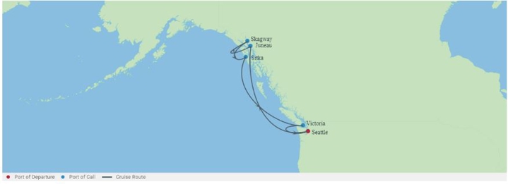 Explore the rugged beauty of Alaska and the Pacific Northwest, beginning in Seattle. Visit the charming ports of Juneau, Skagway, and Sitka, each offering stunning scenery and rich local culture. Pause in Victoria, British Columbia, before returning to Seattle, enjoying scenic days at sea along the way.