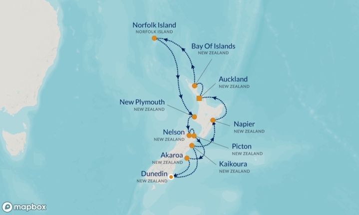 Step onboard Azamara Pursuit for an immersive New Zealand cruise, sailing round-trip from Auckland, and explore the scenic harbours of Akaroa, the wildlife haven of Kaikōura, the cultural highlights of New Plymouth, and the serene beauty of the Bay of Islands. Discover the charm of Norfolk Island and enjoy an overnight stay in Dunedin to fully experience its heritage streets and wildlife.