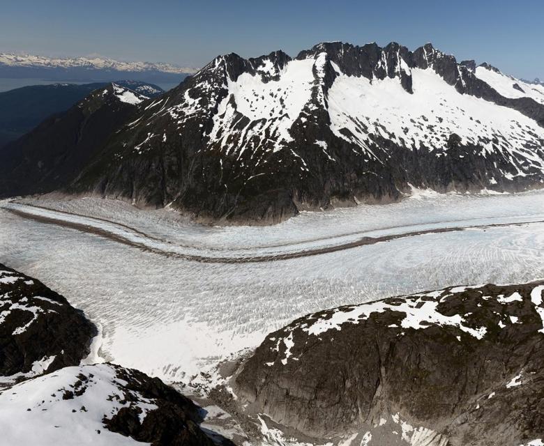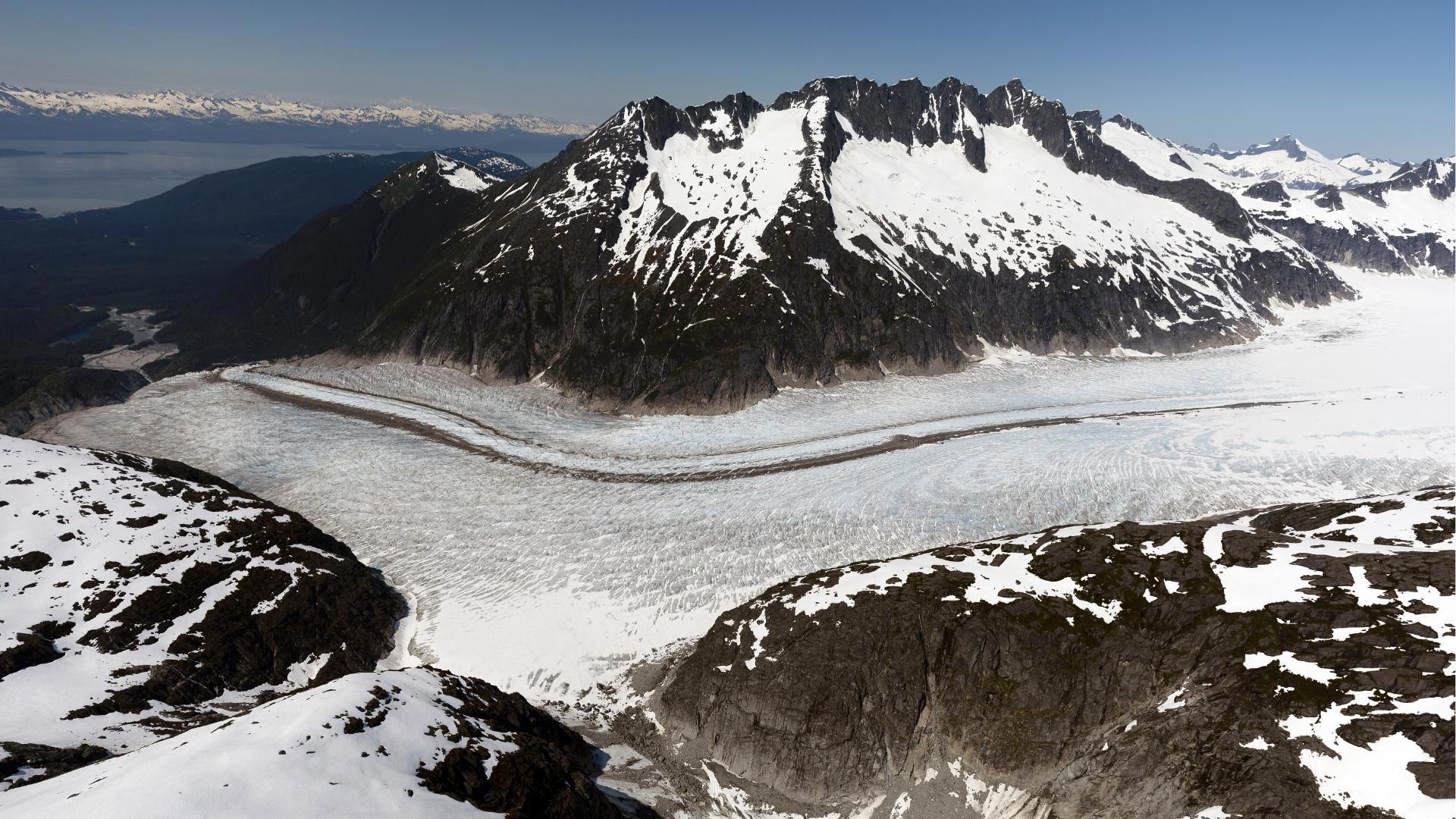 Hubbard Glacier, off the coast of Yakutat, Alaska, is the largest glacier in North America, with a calving front that is more than six miles wide. One of the main sources for Hubbard Glacier originates 76 miles inland. It has been a very active glacier, experiencing two major surges in the past 30 years. This glacier was named after Gardiner Greene Hubbard, a U.S. lawyer, financier, and philanthropist. He was the first president of the National Geographic Society.