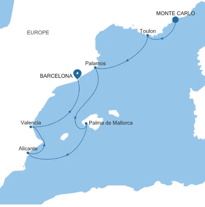 From the glamour of Monte Carlo, this Mediterranean escape winds along the sun-kissed coastlines of France and Spain, calling at Toulon, Palamós, Palma de Mallorca, Alicante and Valencia before arriving in vibrant Barcelona. Expect stylish seaside towns, historic streets, golden beaches and relaxed café culture—an effortlessly elegant journey through some of Southern Europe’s most enticing destinations.