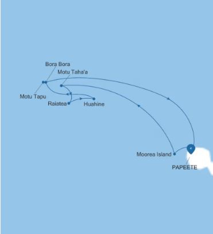 A dreamlike journey through French Polynesia unfolds from Papeete, linking some of the South Pacific’s most beautiful islands. Discover the lush peaks of Moorea, the cultural heart of Raiatea, the tranquil charm of Huahine, and the iconic turquoise lagoons of Bora Bora.