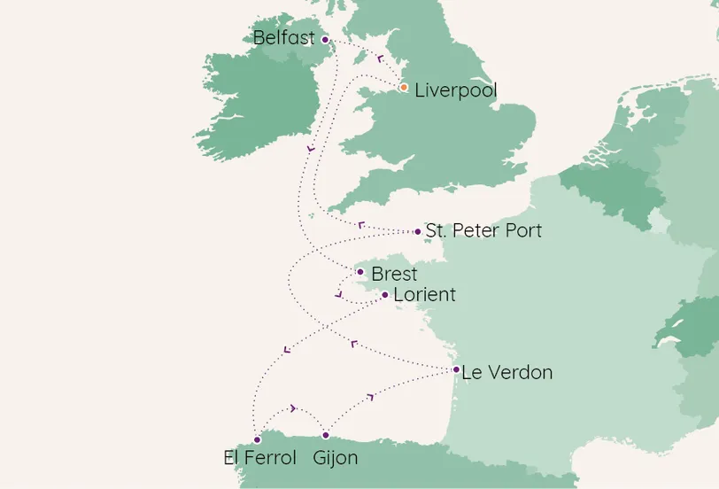 Spend two glorious weeks sailing to Norway’s most beautiful towns and cities. Home to Norway’s first-ever king, you’ll become enthralled by Haugesund’s Viking heritage before sailing to the artistic city of Bergen and onto Alesund, rated the most beautiful city in Norway. You’ll hopefully catch a glimpse of the Northern Lights when visiting Trondheim and Tromso, due to their location on the Aurora Oval. Sailing north of the Arctic Circle takes you to Alta, Tromso, Bodo and brings us to Leknes where you’ll find stunning crystal-clear waters, before arriving at Bodo and returning home via Aberdeen.