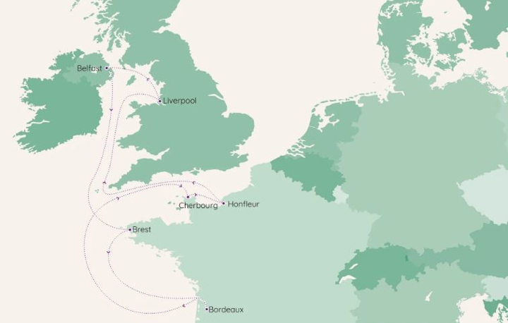 Crossing the Irish Sea to Belfast, you will explore Northern Ireland’s prosperous capital of Belfast, which has risen like a phoenix from the Troubles. Then it’s over the Channel to Brest, France’s westernmost city, which is famed for its stunning beaches, intensely Gallic atmosphere and fine restaurants. Meanwhile, Bordeaux is celebrated for its culture and surrounded by some of the world’s most famous vineyards and quintessentially French Cherbourg boasts a remarkable maritime history and the second largest artificial harbour in the world. Finally, we will take in Honfleur– another lovely port, which inspired the Impressionists including Claude Monet.