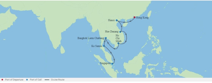 Your journey begins in Hong Kong and moves through some of Asia’s most captivating coastal cities. From the dramatic limestone peaks of Halong Bay to the cultural depth of Hue and the vibrant energy of Ho Chi Minh City, each stop reveals a new side of Vietnam. Thailand adds its own charm with time in Bangkok and the island beauty of Ko Samui, before the voyage concludes in dynamic Singapore. With a mix of iconic sights, rich traditions, and relaxing days at sea, this itinerary brings Asia’s best into one unforgettable holiday.
