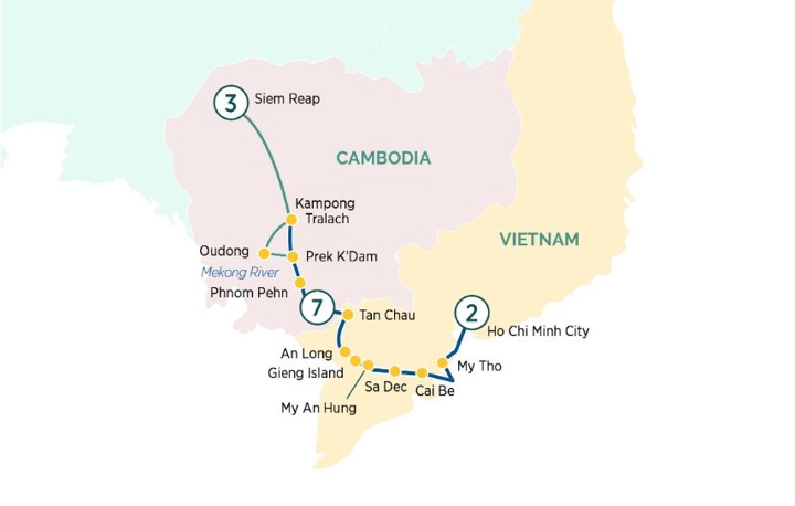 Your journey begins in Siem Reap, where the dawn sunlight illuminates the ancient architecture. The otherworldly sites of Angkor Wat, Angkor Thom and Ta Prohm are sure to fascinate. From here, your journey along the majestic Mekong introduces Phnom Penh, invites you inside a traditional Cao Dai temple in Tan Chau to discover the unique Vietnamese religion, and continues onwards before leaving Emerald Harmony at Ho Chi Minh City for a two-night stay.
