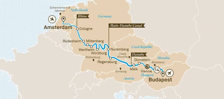 Your journey begins in picturesque Amsterdam. A labyrinth of narrow laneways adorned with twinkling lights, canals lined with beautifully preserved 17th century buildings and Christmas trees decorating historic squares, Amsterdam is a joy to wander in the festive season.