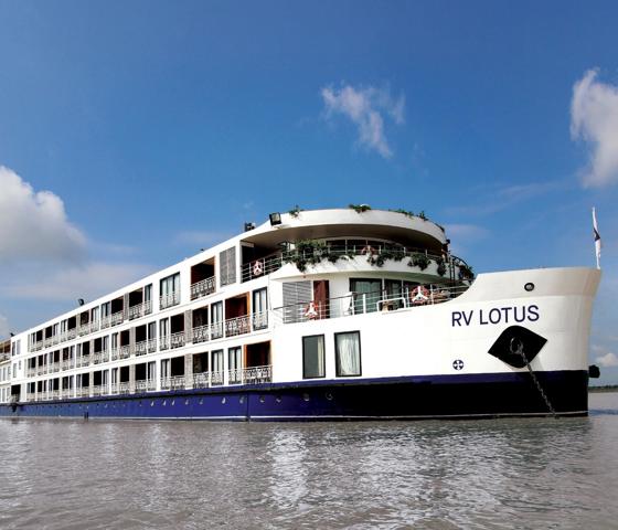Glide along the Mekong River on the RV Lotus and discover the alluring destinations of Vietnam and Cambodia in premium comfort. Featuring only 54 cabins, this boutique vessel boasts spacious and elegant Vietnamese-inspired suites, each with a private balcony. Sip a cool drink or enjoy a refreshing dip in the pool on the Sun Deck after a day of exploration.