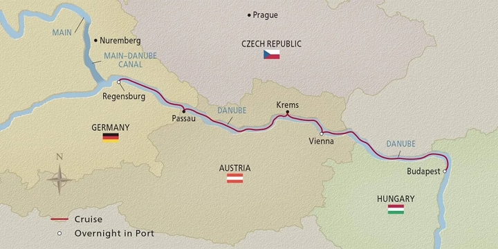 Embark on an unforgettable 7-night journey along the Danube River with Viking Cruises' Romantic Danube itinerary, sailing from Regensburg, Germany, to Budapest, Hungary. This enchanting cruise offers a blend of rich history, stunning landscapes, and cultural experiences across three countries: Germany, Austria, and Hungary.