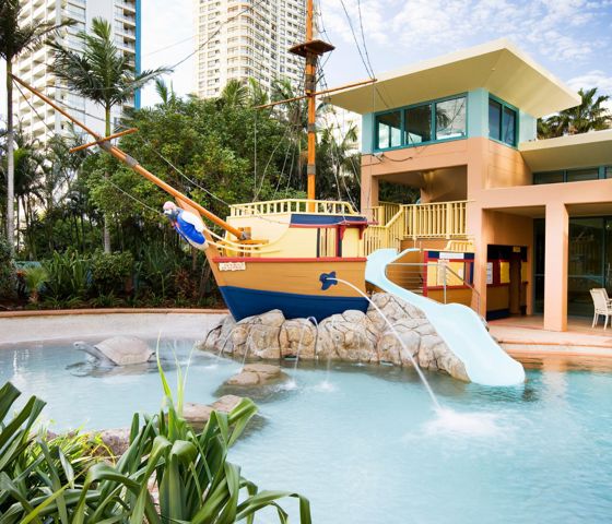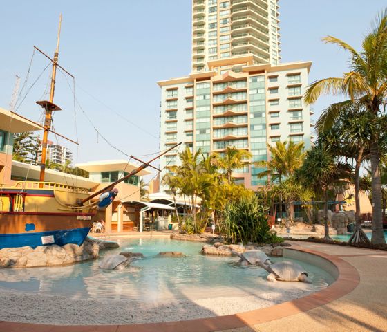 Mantra Crown Towers is a family-friendly resort located just 100 meters from Surfers Paradise Beach on the Gold Coast, Australia. It offers spacious, self-contained one, two, and three-bedroom apartments—many with ocean views and private balconies. The resort is designed for both relaxation and fun, featuring a lagoon-style pool with a sandy beach, a pirate ship and waterslide for kids, a heated indoor pool, spa, sauna, and a fully equipped gym. Guests can also enjoy the award-winning Chiangmai Thai Restaurant onsite, or explore the nearby dining and shopping precinct of Cavill Avenue, just a short walk away.