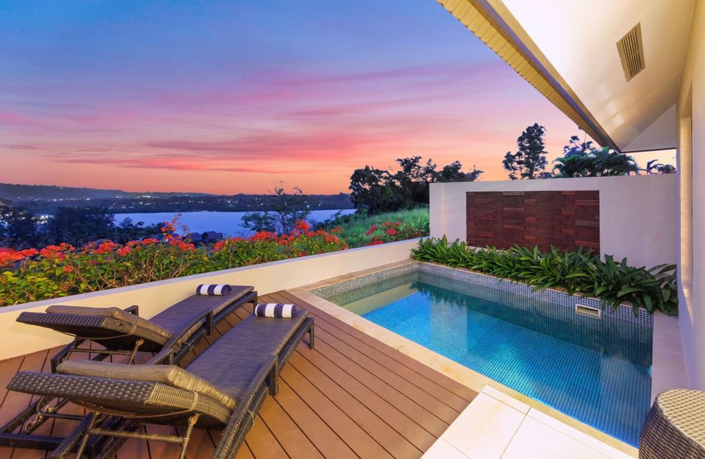 The Lagoon View Pool are beside a crystal-clear pool with beautiful views over Erakor Lagoon, these bungalows offer a relaxing tropical escape. Enjoy a furnished balcony, modern interiors with tropical artwork, comfortable seating, and a well-equipped kitchenette.