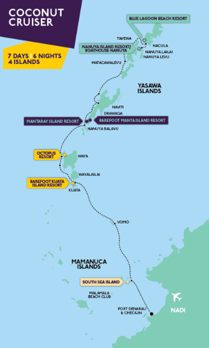 • Return South Sea Cruises vessel transfers from Port Denarau and around the Yasawa Islands